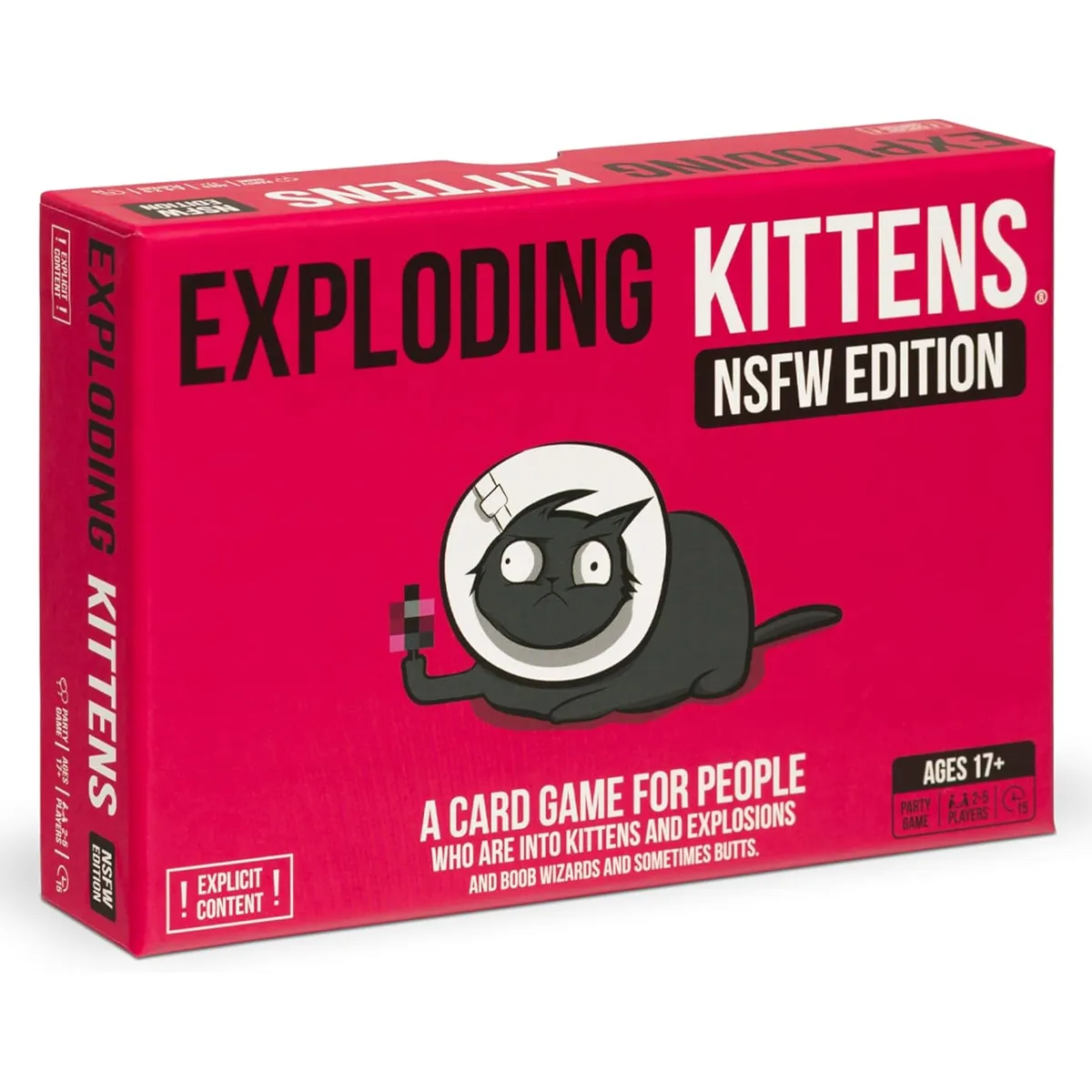 This is the cheeky adult version of the hit game. Draw a card and hope you do not explode. If you draw a kitten, play a defuse or you are out. Action cards twist the turn order and odds. It is fast, loud, and very funny. Setup takes a minute. Teach takes a minute. Play many short rounds. The art is bold and the jokes land with grown ups.