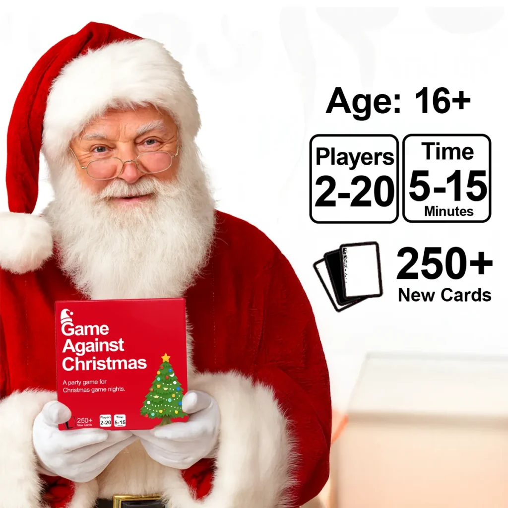 If you’ve ever wished Cards Against Humanity wore a Santa hat, this is it. Game Against Christmas is a 252-card party deck designed purely for adults who like their eggnog with a side of chaos. The rules take less than two minutes to learn, and play scales up to 20 people—so it’s as easy to pull out after dinner as it is to keep going until midnight.